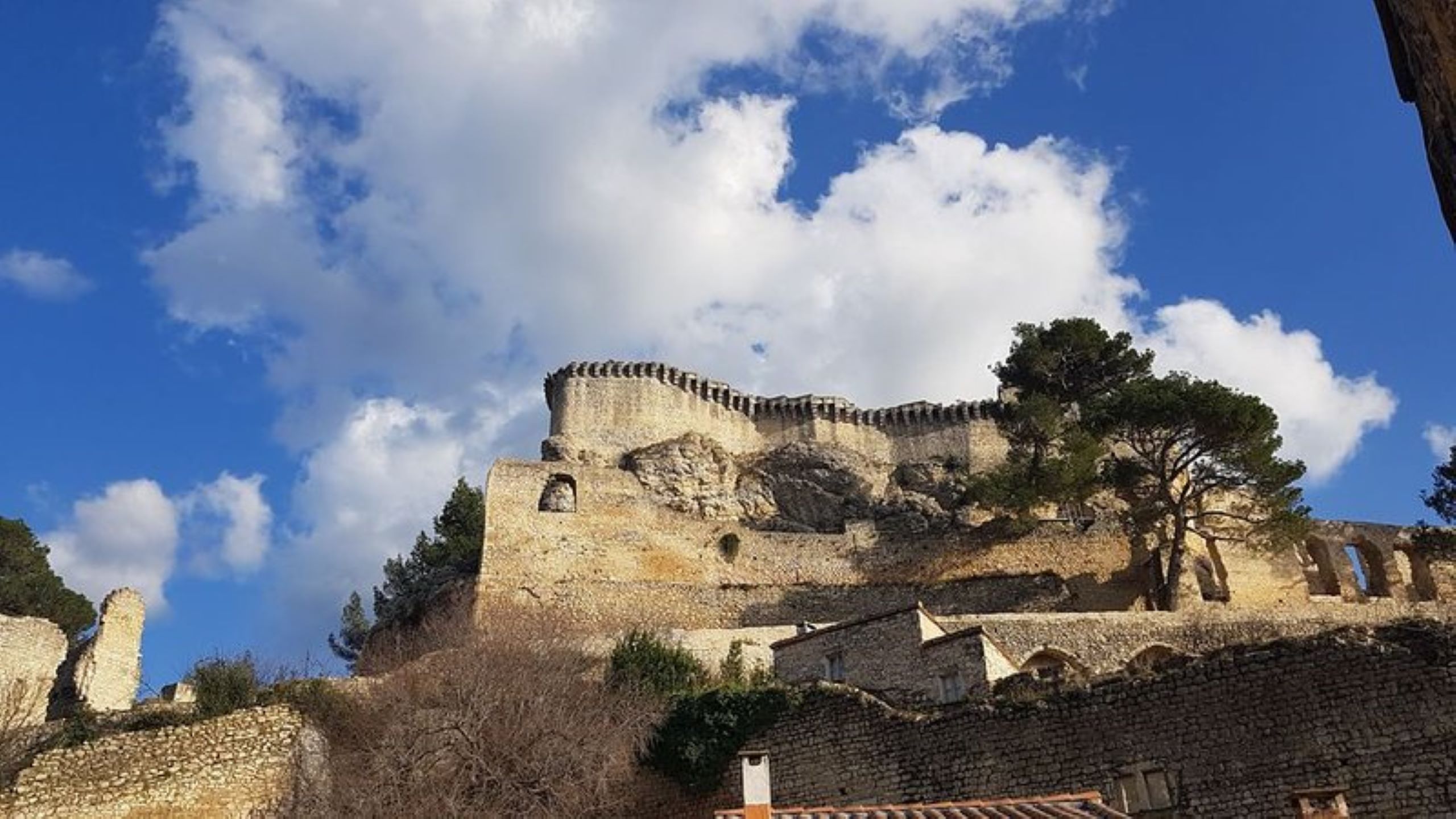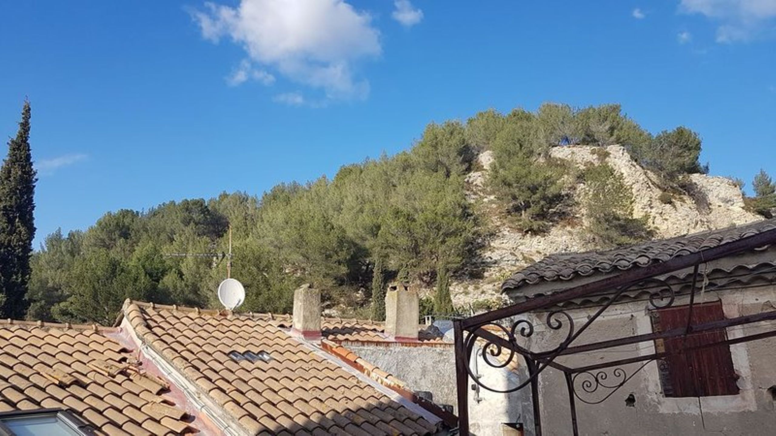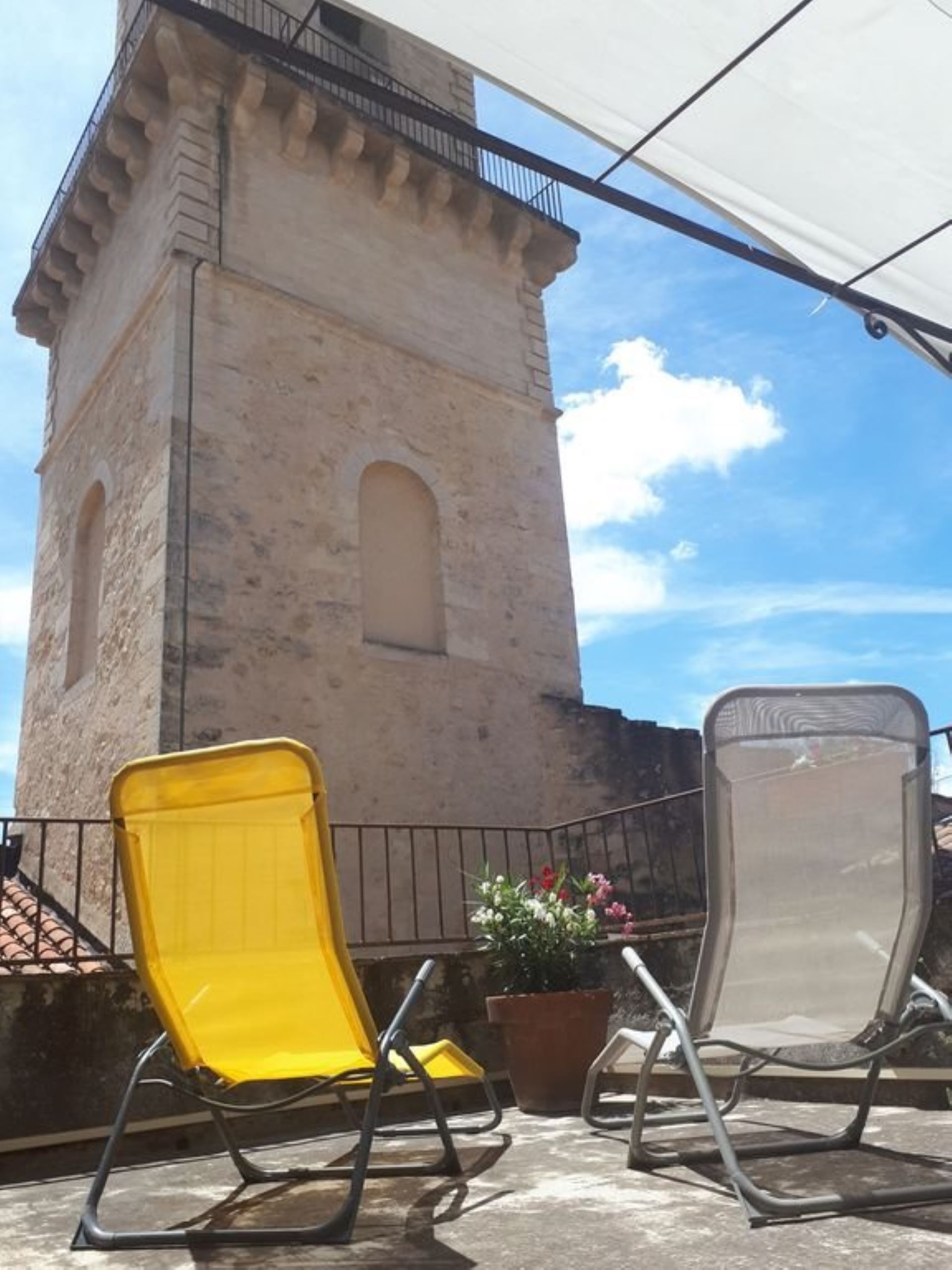 La maison, situé au coeur du village et au pied du château avec au premier étage une petite terrasse pour prendre votre petit-déjeuner. Une grande terrasse au deuxième étage permet d'admirer le château, la montagnette et le clocher et de profiter du calme pour se reposer.