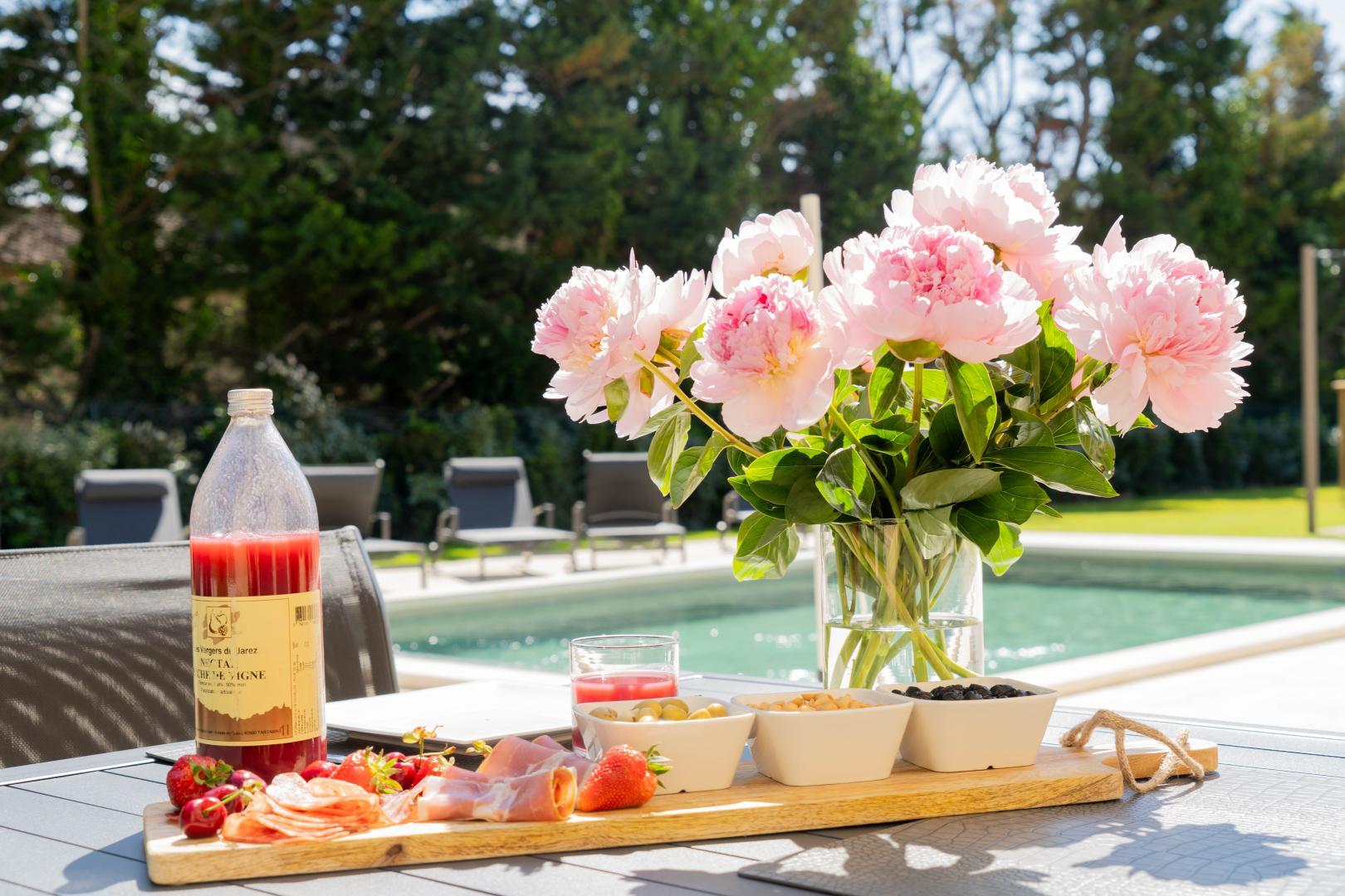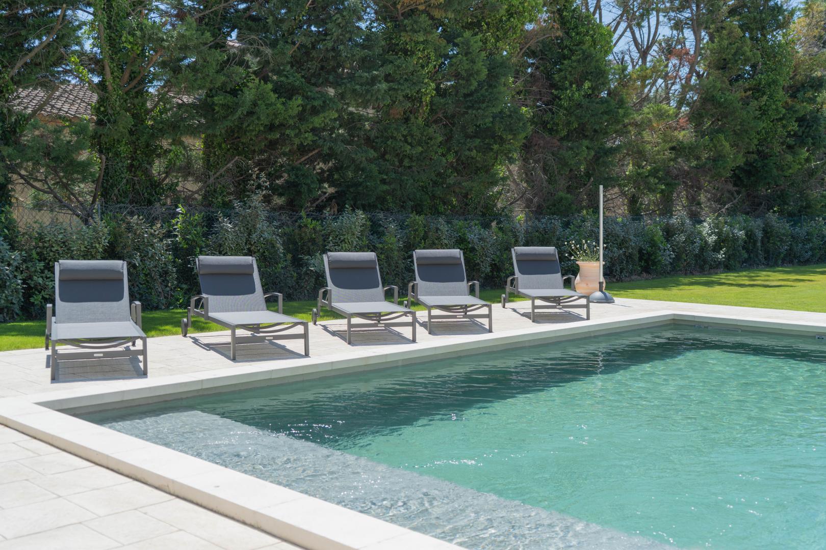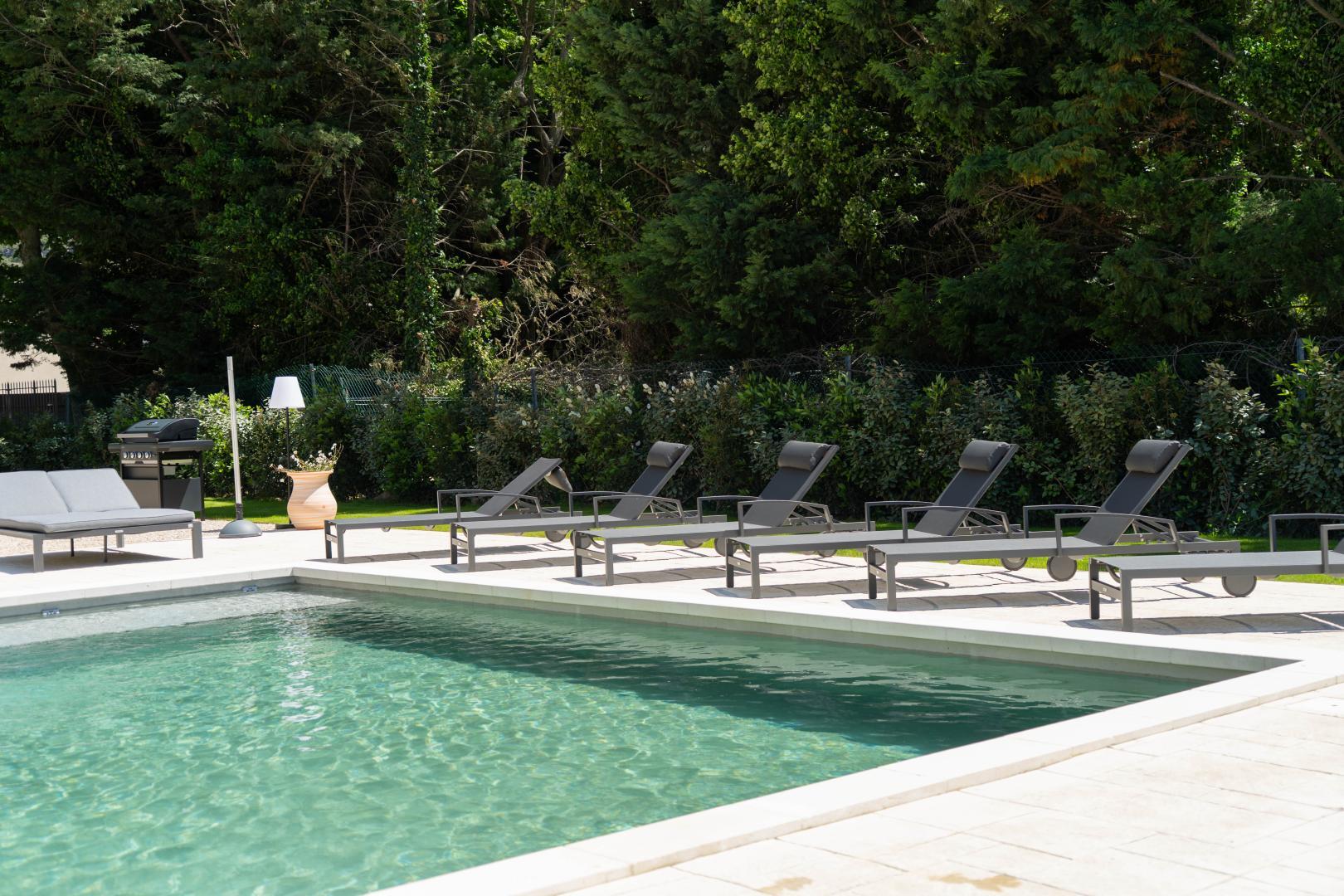 Profitez d'un jardin clos et privatif de 1400 m², et d'une grande terrasse de 280 m² avec treille et qui vous invite au farniente autour de la piscine chauffée et sécurisée, ou à une partie de ping pong et une partie de pétanque sous le soleil provençal. Un barbecue à gaz est également à votre disposition pour de savoureux repas en plein air.