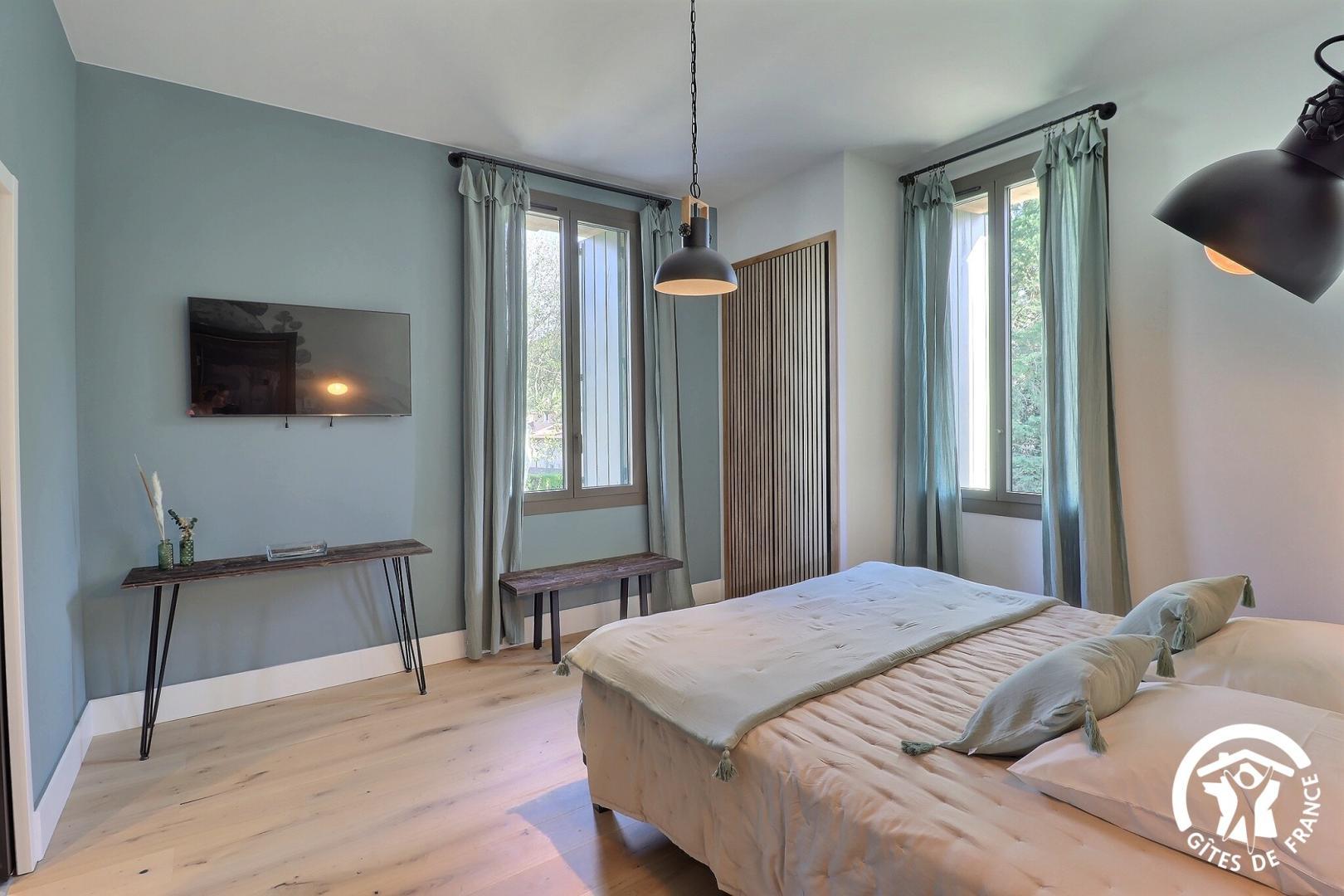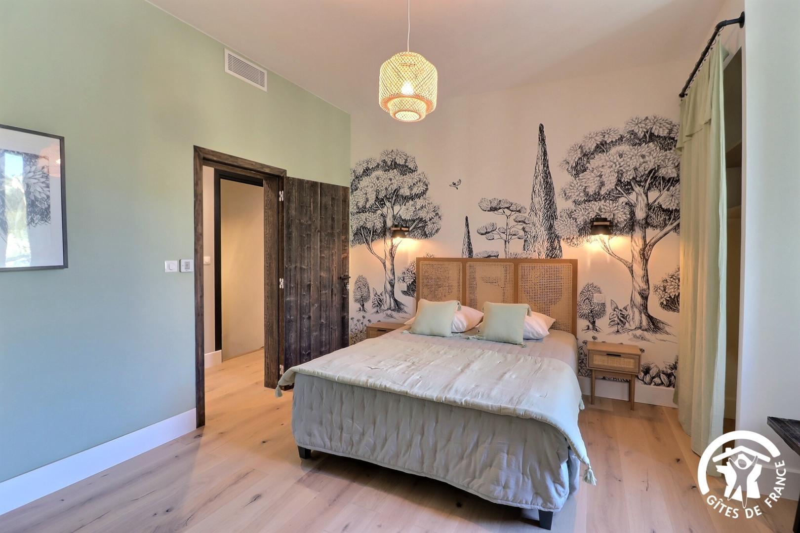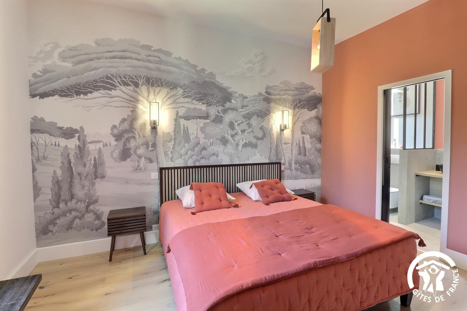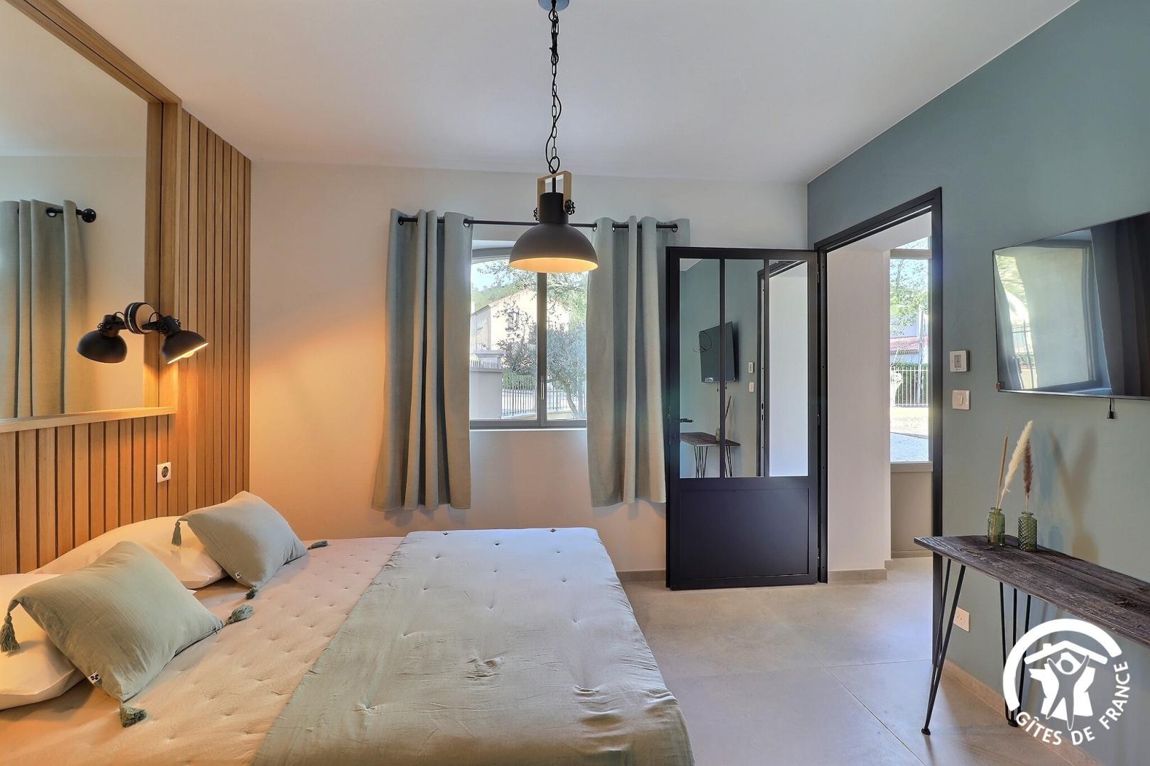Une chambre de plain-pied est aménagée pour l'accessibilité PMR, avec sa salle d'eau et WC privatifs.