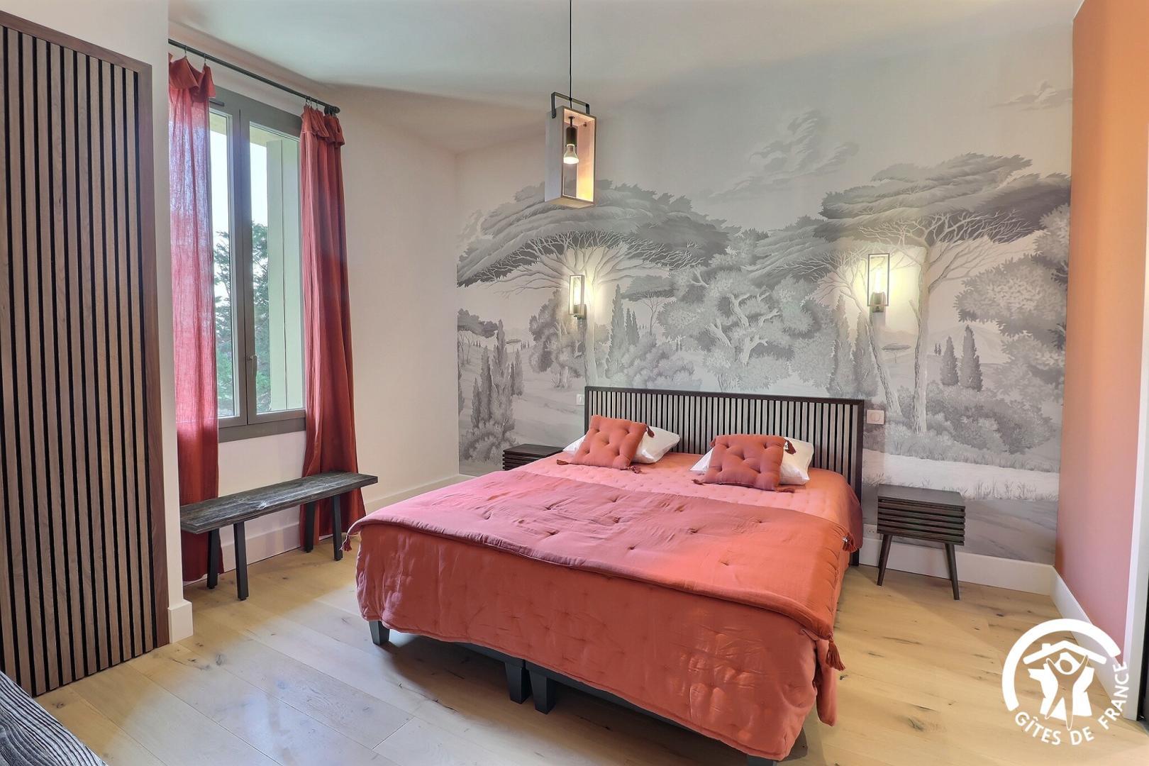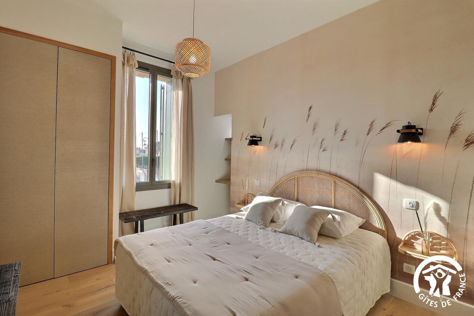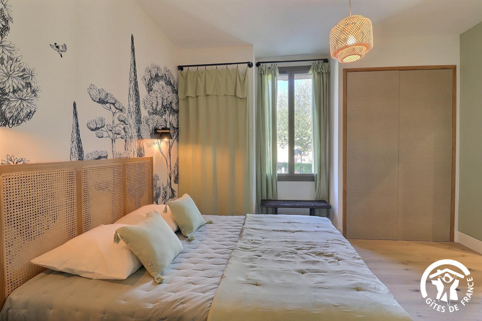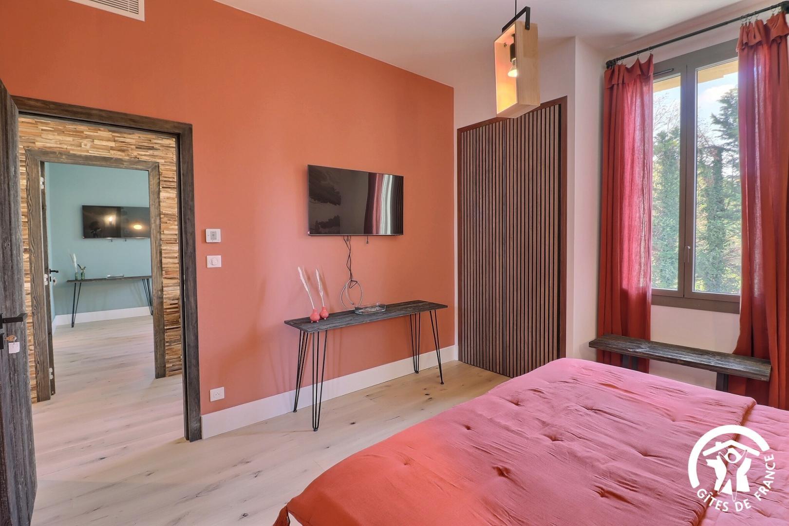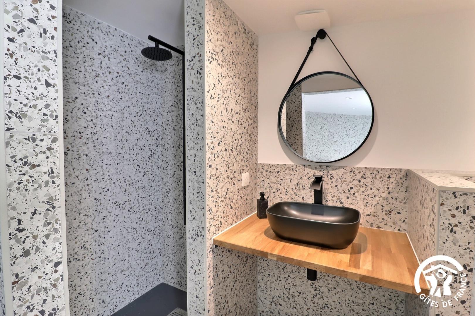 Une chambre de plain-pied est aménagée pour l'accessibilité PMR, avec sa salle d'eau et WC privatifs.