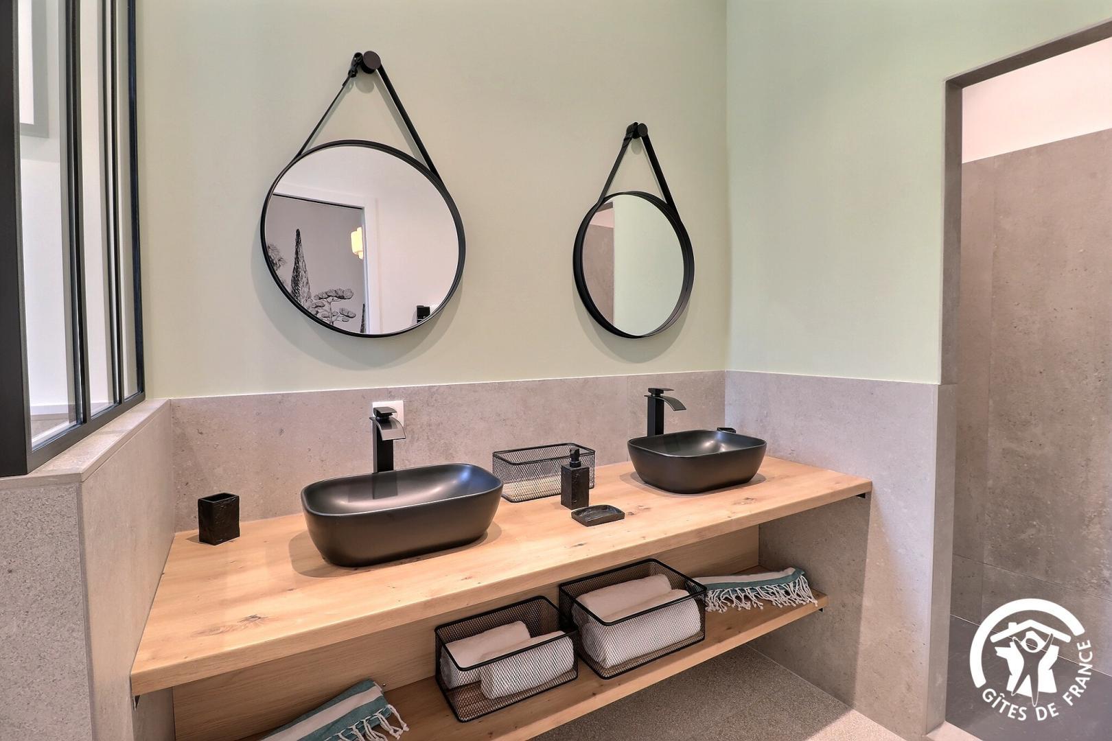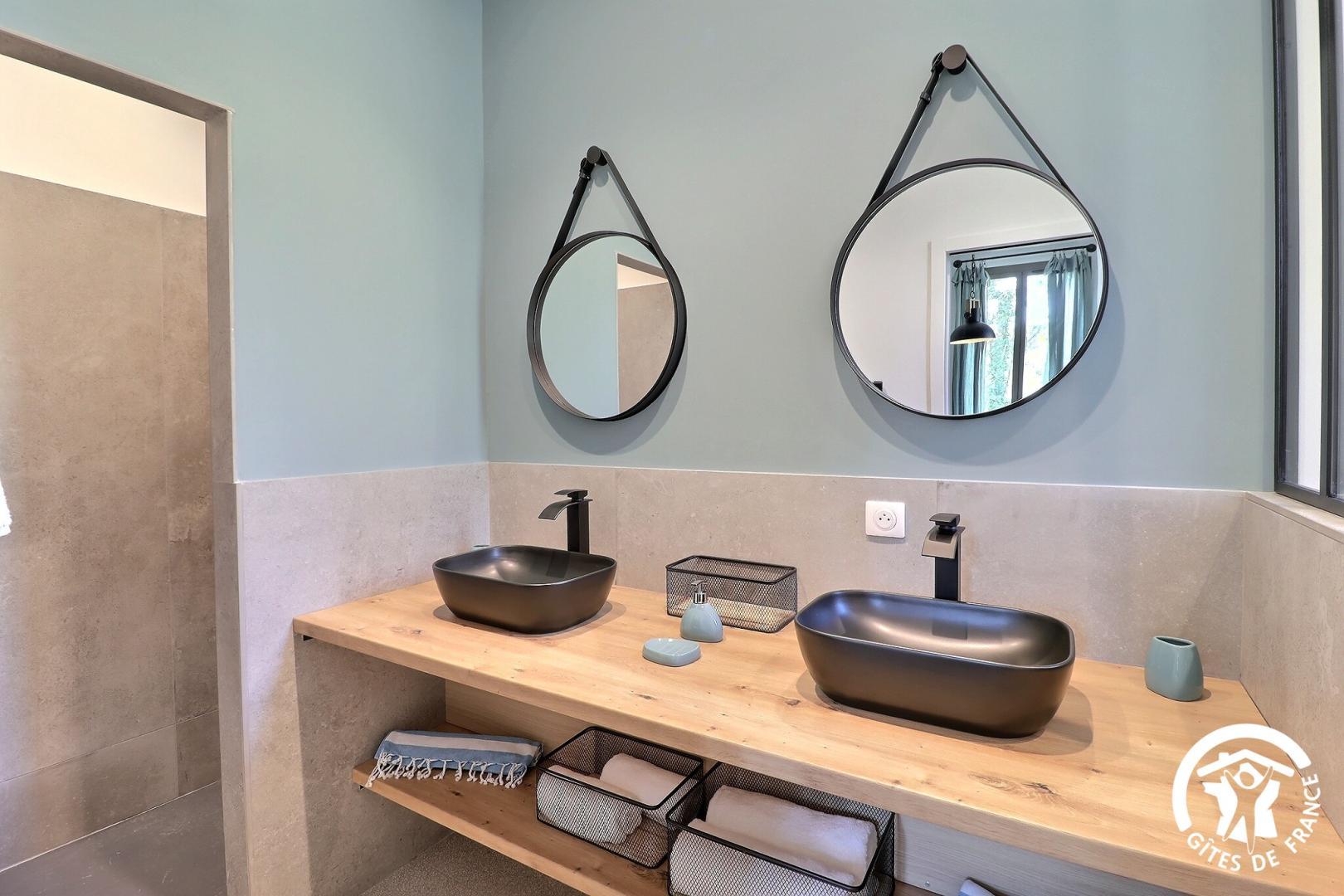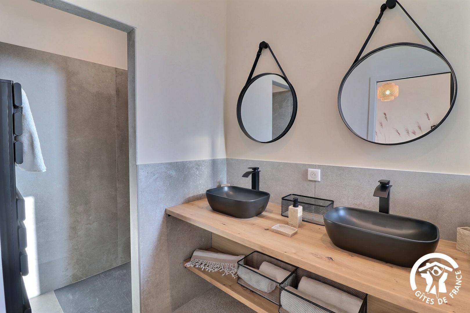 À l'étage, quatre chambres confortables disposent chacune de leur propre salle d'eau avec WC, pour garantir à chacun intimité et autonomie.