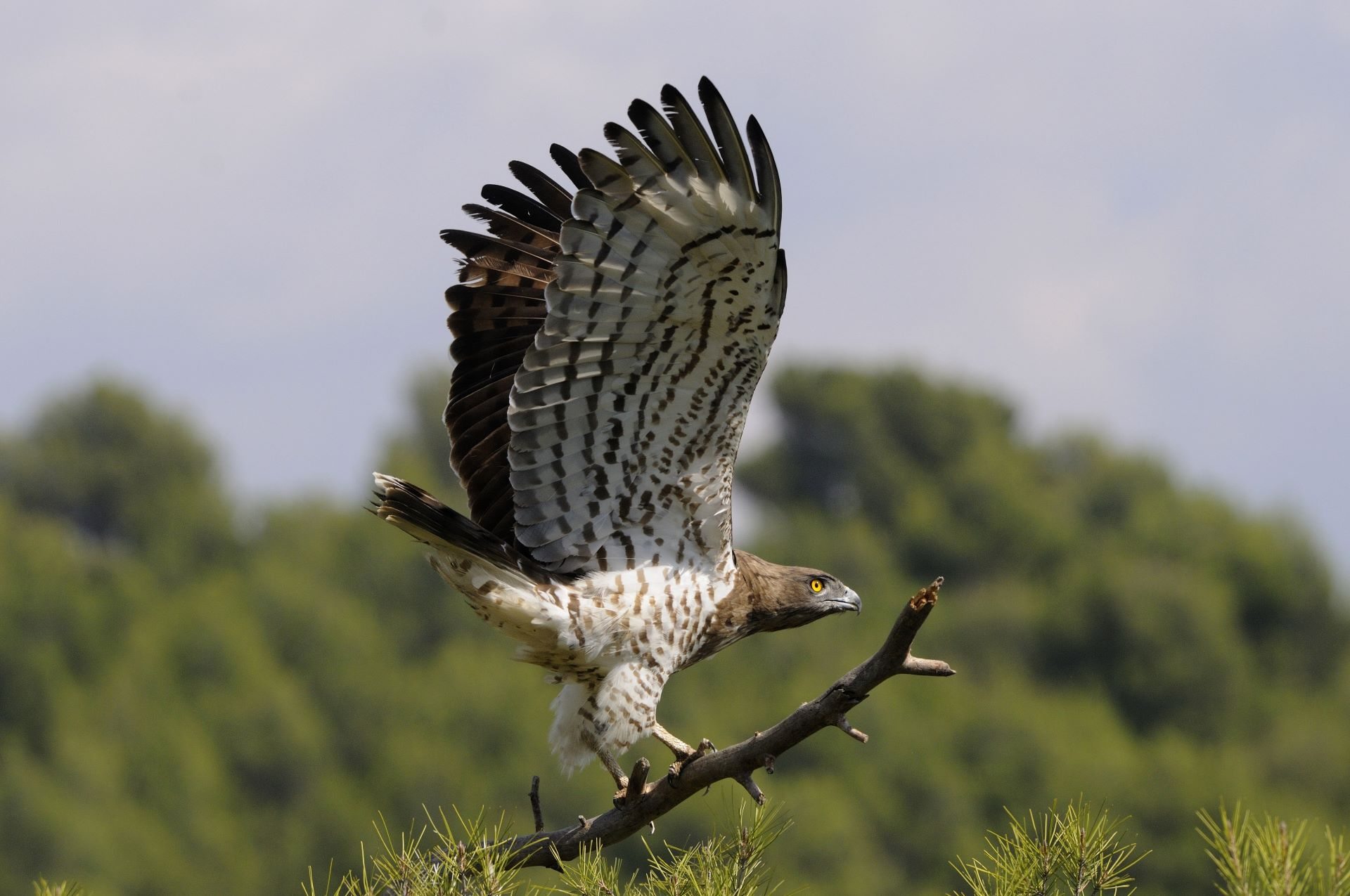 Le Circaète est un grand rapace d’apparence blanche assez facilement observable en vol ou perché sur le sommet d’un arbre, un rocher ou un pylône électrique. Il est un spécialiste du vol stationnaire qu’il pratique couramment, même par vent fort, pour repérer ses proies.