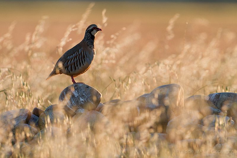 La Perdrix rouge est abondante en périphérie de la steppe où elle trouve des buissons pour abriter son nid. C’est un gibier très recherché, sa chasse est autorisée de septembre à janvier.