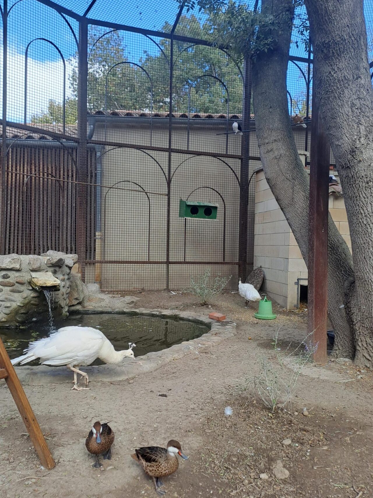 Une volière abrite aussi différents volatiles dont de majestueux paons.
