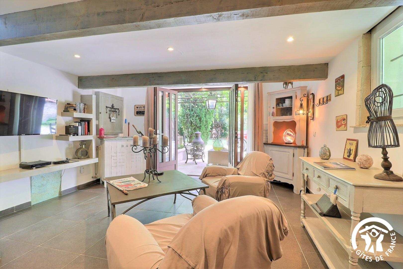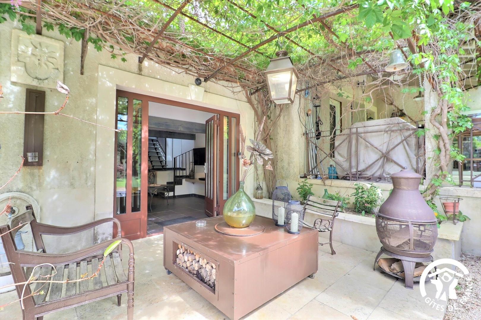 Un charmant cocon pour 2 personnes situé dans un nid de verdure, avec piscine, braséro, jardin et terrain de pétanque.