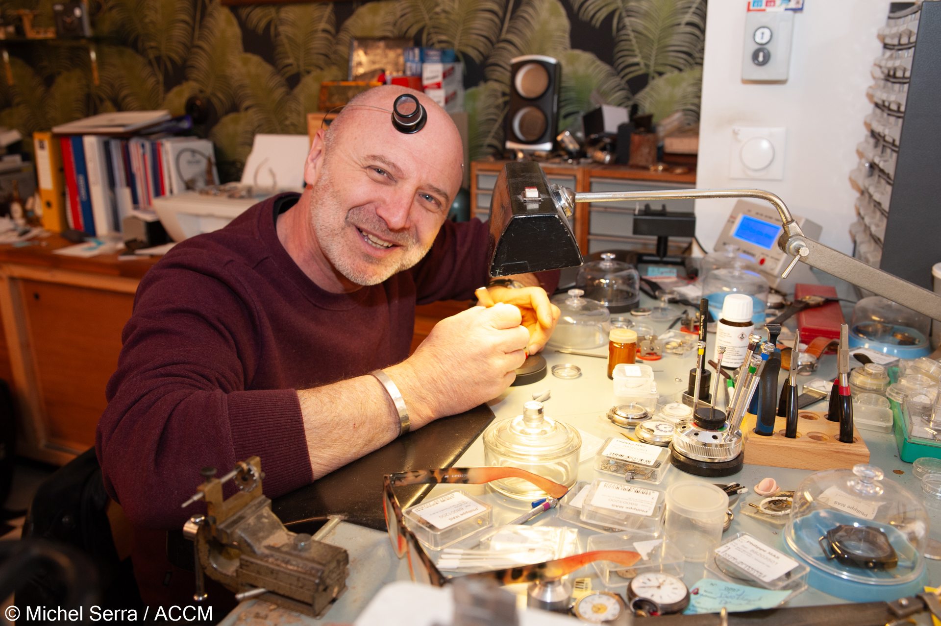 Michel SerraOlivier Jonquet aime partager sa passion. Il s’est fait la promesse de transmettre son métier aux plus jeunes et reçoit des stagiaires en CAP horlogerie régulièrement. Il leur enseigne l’art de l’utilisation des outils du métiers tel que la brucelle, petite pince permettant de redresser les aiguilles des montres, d’effectuer les torsions adéquates sur les spirales du mécanisme…