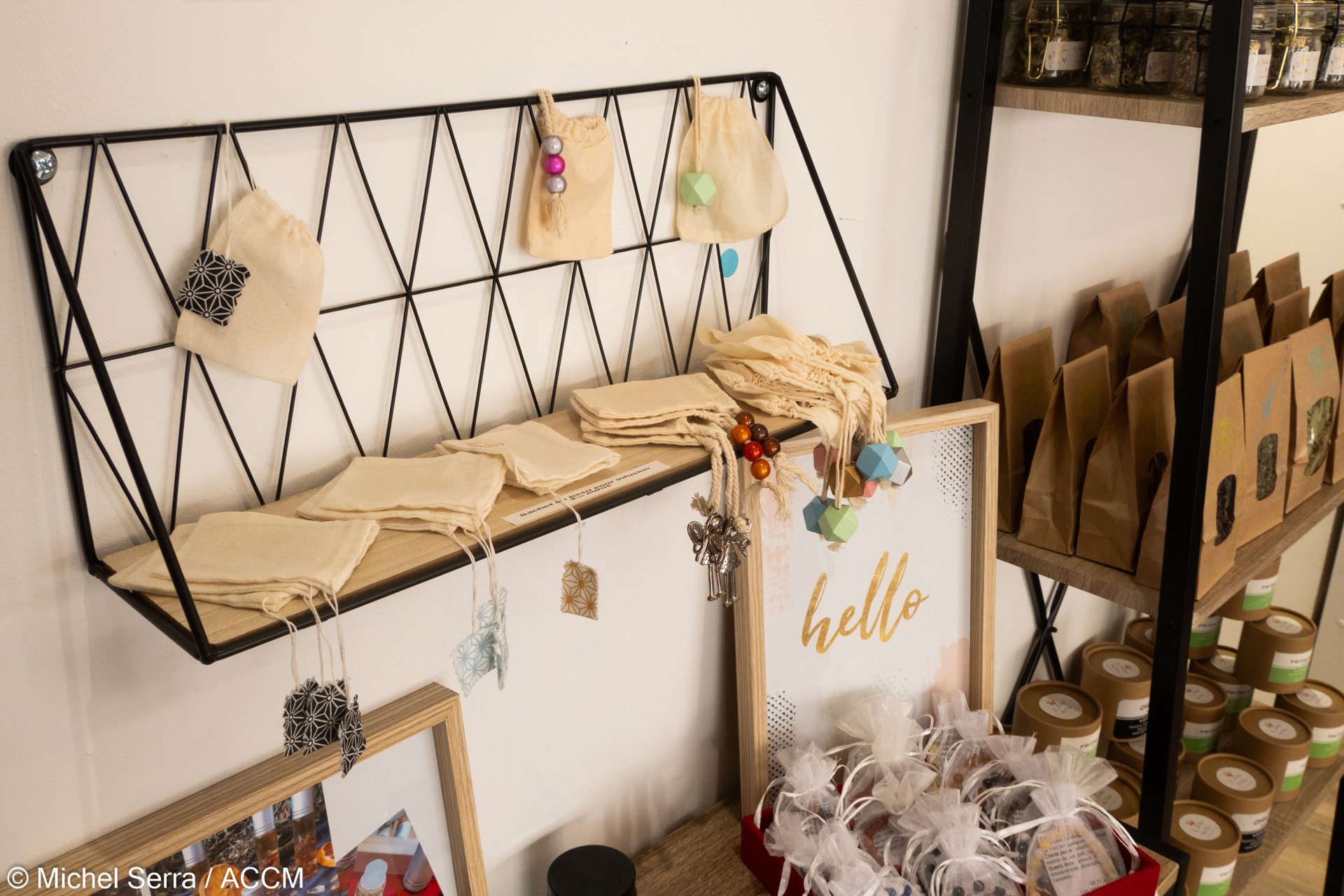 A deux pas de la mairie de Tarascon, juste en face d’un incroyable tapissier décorateur, entre un institut de beauté et un (excellent) restaurant, je me rends à la boutique « La place des artisans ». Faites-le pas et entrez ! Vous allez découvrir un concentré de créations originales entre couture, maroquinerie, bijoux, et … infusions. Une bulle d’énergie créative !