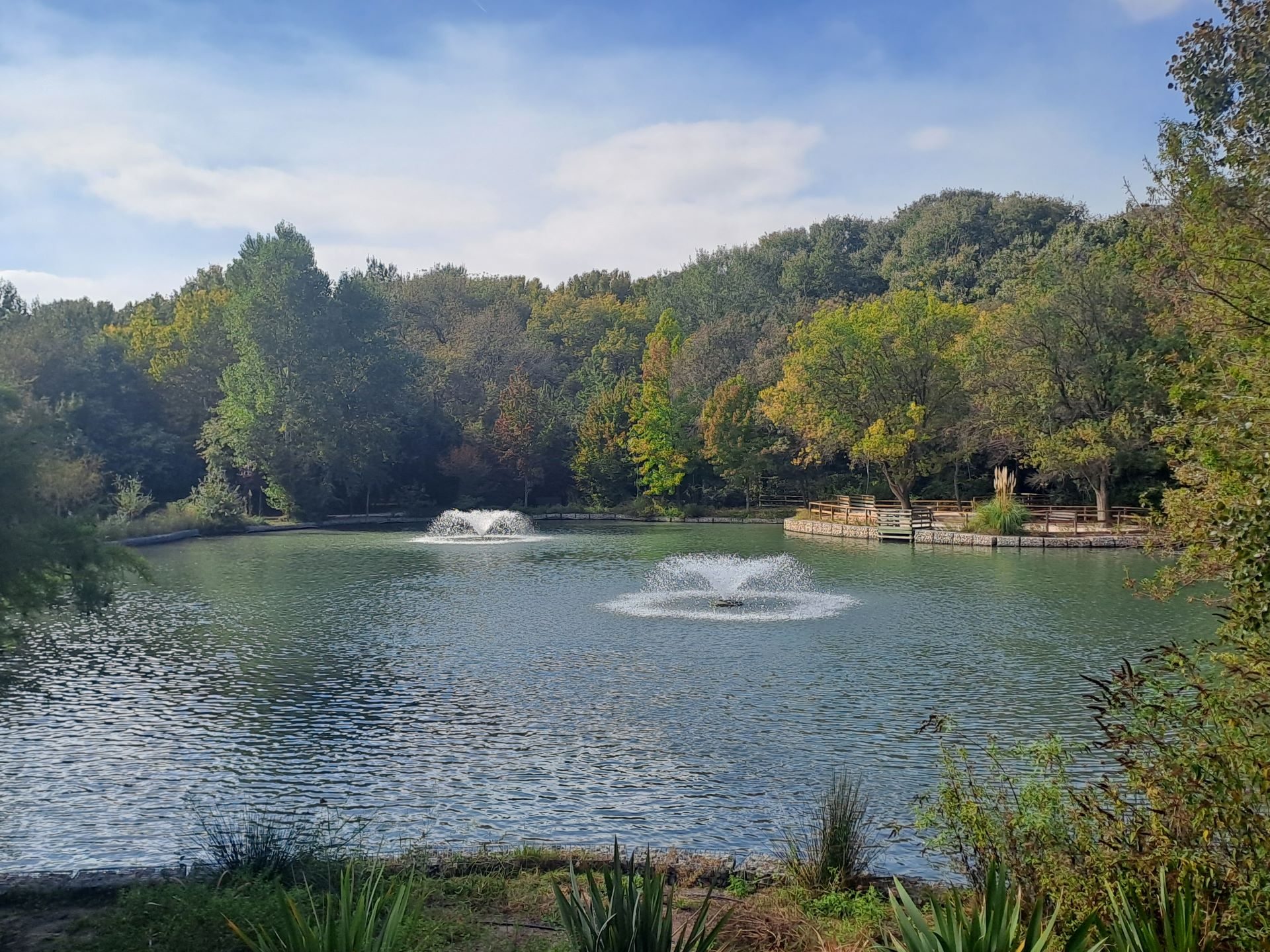 Je souhaite prendre un peu de hauteur et monte sur l’observatoire en bois qui va sans nul doute plaire aux enfants. D’ailleurs, si vous possédez une paire de jumelles, je vous invite à l’apporter, ils seront ravis de jouer au pirate ! De là-haut, je domine le lac, sa grande pelouse, et une partie de la végétation du site, j’aperçois plusieurs personnes se balader, des personnes âgées discuter sur un banc et deux sportifs faire des étirements sur la pelouse.